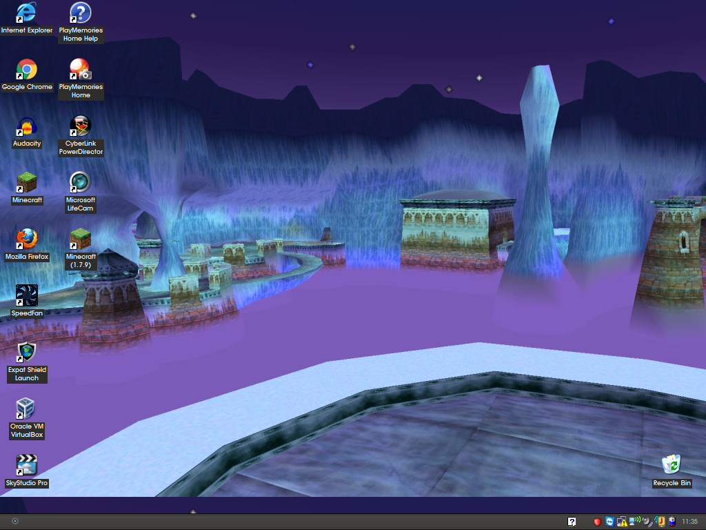 Customised Windows XP Desktop17th February 2016 Alternate formats: JPEG an old screenshot I took of the desktop I had with the Windows XP install on my ThinkPad X32 laptop. the background is a screenshot of the map from the Ice Cavern level (?) in the original Spyro PS1 game. the custom appearance I used is GSM VS, which you can find an archived link for on the Internet Archive |